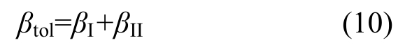 其中:βI按式(6)计算,βII按式(9)计算。经分析,计算值βtol,c与试验值βtol,t之比的平均值