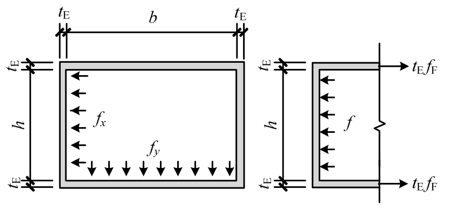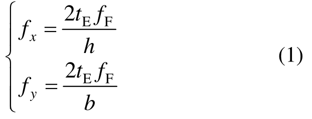 式中:tE为HDC面层厚度,取15 mm;b、h分别为砖柱横截面宽度和高度。为简化计算,采用fx、