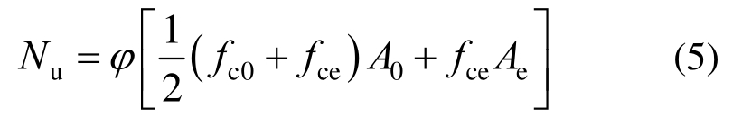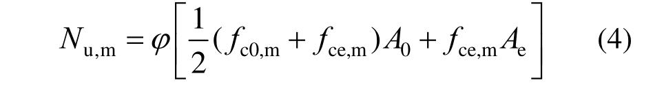 式中:Nu,m为HDC约束砖柱轴压承载力;φ为高厚比对轴压砖柱承载力的影响系数,因本文试件的高厚比β均为3,故取φ=1.0。