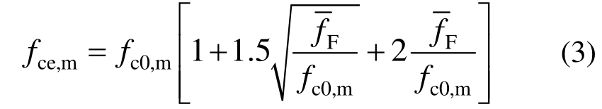 式中:Nu为HDC约束砖柱轴心压力设计值;fc0为原构件砌体抗压强度设计值;fce为HDC约束砌体抗压强度设计值,按式(3)计算,根据《高延性混凝土应用技术规程》[23],等效横向约束压应力计算时HDC的抗拉强度取同强度普通混凝土抗拉强度设计值的2倍。