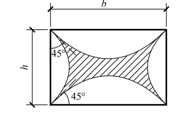 有效约束面积计算模型参考美国混凝土协会(ACI)的矩形截面柱有效约束区面积近似计算模型(ACI 440模型),该模型假设FRP材料约束矩形截面的有效约束区由一条标准抛物线确定,该抛物线和截面周边交点处的切线与边长夹角为45°,计算模型如图7所示[19]。