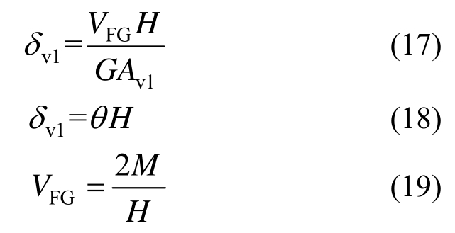 式中:G、E为钢板的剪切模量和弹性模量;VFG为腹杆传递给节点板的剪力;H为等效节点板的高度;M为节点域节点板承受的弯矩;Av1为节点板的受剪切面积,取Av1=t×H,t为节点板厚度。