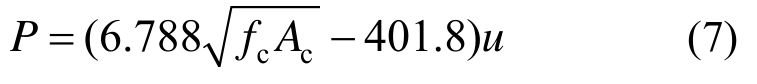 式中:P为PBL剪力键受到的荷载;fc为混凝土的抗压强度设计值;Ac为混凝土隼的面积Ac=πd2/4,d为混凝土隼直径;u为PBL剪力键的滑移量。