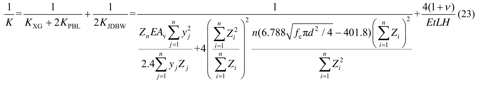 由式(14)和式(15)可得PBL剪力键群的抗剪刚度为: