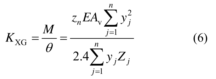 式中:G、E为混凝土的剪切模量和弹性模量;Vi为第i排剪力键传递给弦杆的剪力;yi为Vi到转动中心的距离;Zi为上部和下部第i排剪力键的距离,即受剪切域高度,当对称布置时Zi=2yi;M为弦杆受剪域承受的弯矩;Av为弦杆的受剪切面积,取弦杆截面面积。