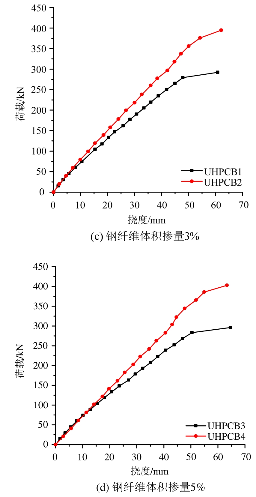 UHPC简支梁的荷载-挠度曲线(见图7)有如下特点: