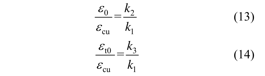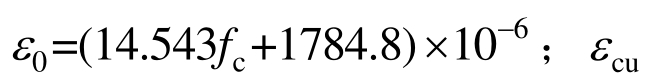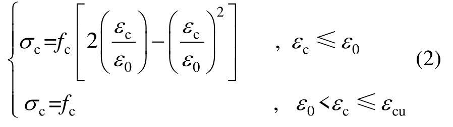 式中:σc为UHPC应变为εc时的压应力;fc为UHPC轴心抗压强度;ε0为UHPC压应力达到fc时的压应变,文献[15]给出了峰值应变的经验公式