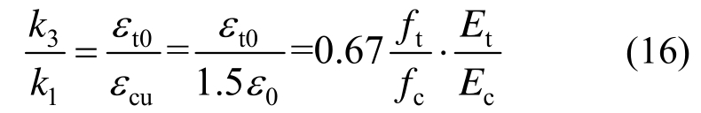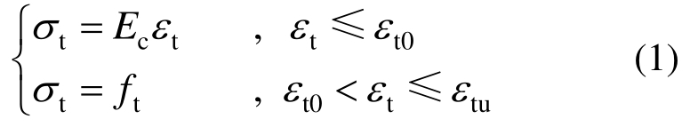 式中:Ec为UHPC弹性模量;σt为UHPC拉应变为εt时的拉应力;ft为UHPC的峰值拉应力;εt0为UHPC的峰值应变;εtu为UHPC的极限拉应变。