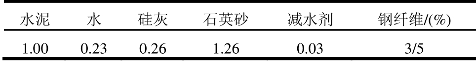 水泥 水 硅灰 石英砂 减水剂 钢纤维/(%)1.00 0.23 0.26 1.26 0.03 3/5