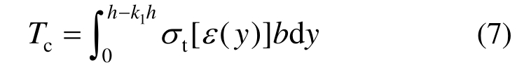 图10(c)截面应力图中既有弹性区域也有塑性区域,假定各区域的高度进行截面分析,并将式(1)、(2)代入式(8)可得: