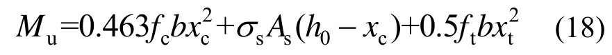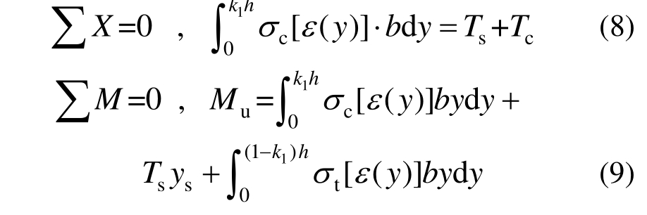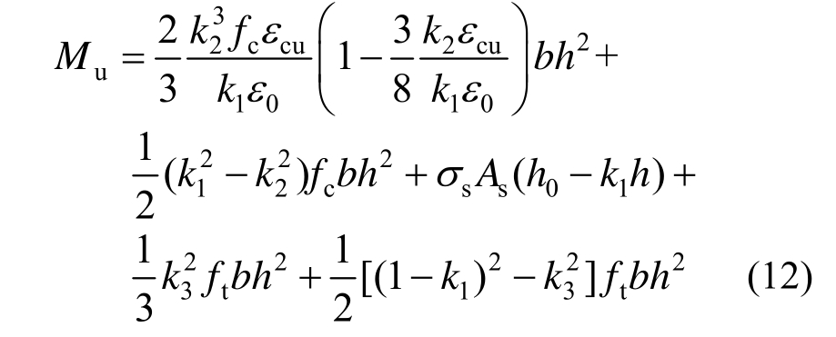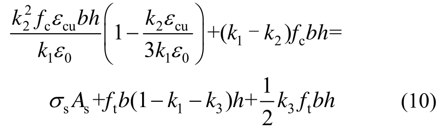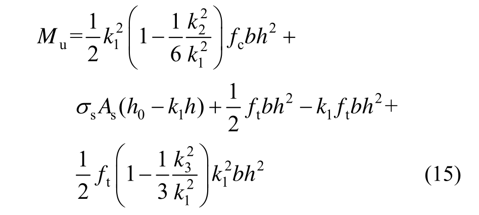代替。令截面受压区高度xc=k1h,将上述结果代入式(15),简化得: