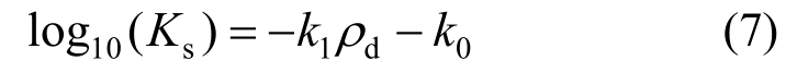 。Ks为饱和渗透系数,尽管国内外针对接缝材料渗透系数的研究较少,但是针对各类膨润土已有的研究表明[5,14],相同温度下,饱和渗透系数Ks与膨润土的干密度的指数线性相关: