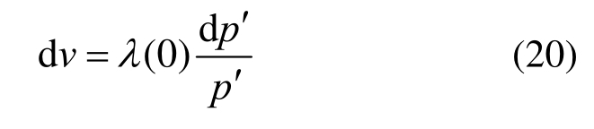 图2中p′为平均主应力,v为比体积,v=1+e,e为孔隙率,砌块和接缝的初始比体积分别为vb0和vj0。λ(0)为土体饱和状态的压缩指数,有: