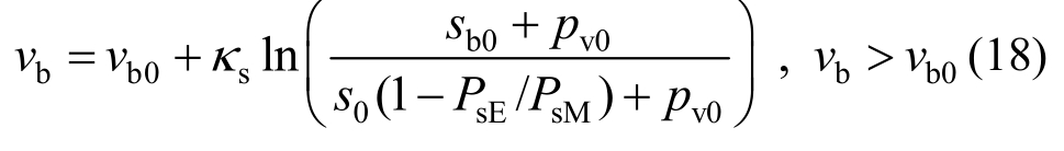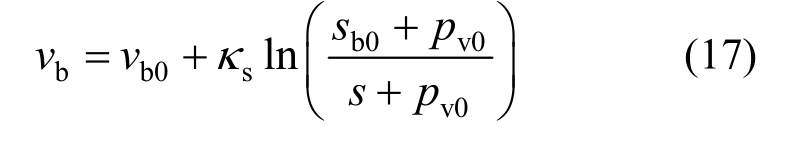 式中:s/MPa为吸力值;κs为吸力作用的弹性变形指数;pv0为拟合参数。设初始状态砌块的比体积和吸力分别为vb0和sb0,对式(16)积分得到自由膨胀状态下vb和s的关系:
