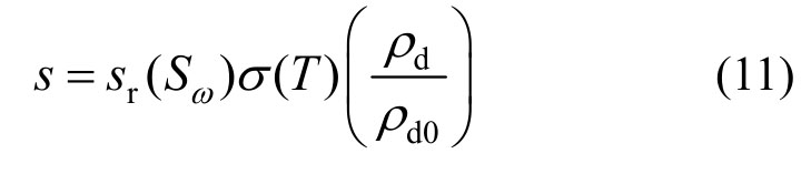 假设气压恒定,通过水压p的正负判断土体的饱和状态,水压p力为负时,存在吸力s=-p。吸力s与土体饱和度、温度和干密度有关: