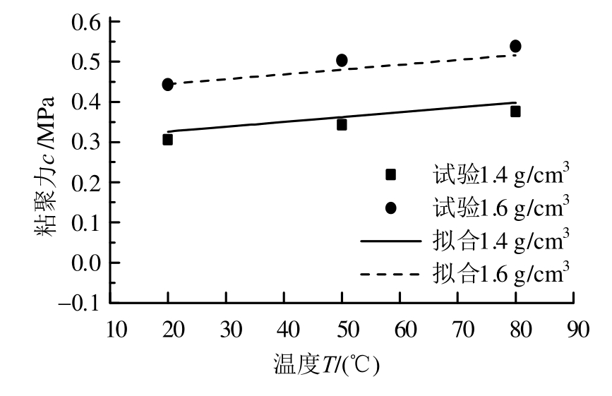 图3 粘聚力与干密度、温度的关系