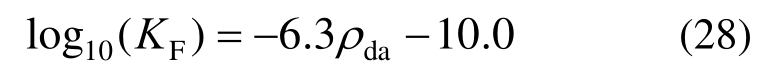 结合4.2节中各表的数据,将平均干密度ρda与平均渗透率KF进行回归,得到ρda与KF的拟合关系式: