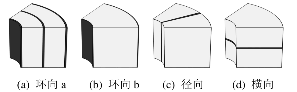 图11 分别只含环向、径向、横向接缝的计算模型