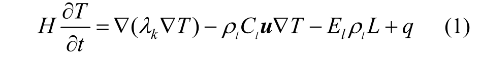 本文计算中不考虑空气流动所携带的热量,并认为在某一点处,土颗粒和水的温度瞬间达到平衡,因此只有一个温度变量T,得到热传导的控制方程: