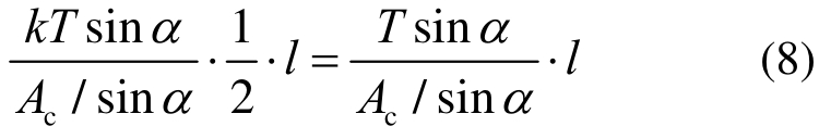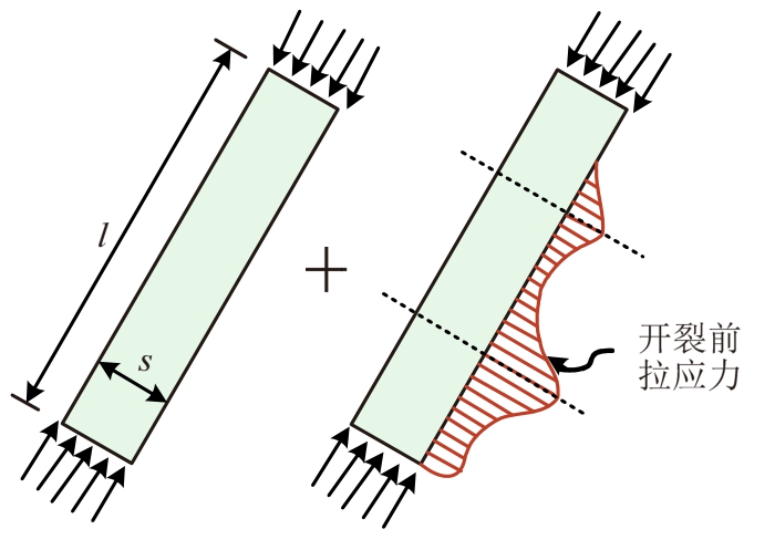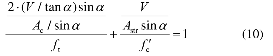式中,k为主拉应力沿垂直于压杆方向的不均匀分布系数,假定该分布沿压杆方向呈三角形[10],则由式(8)的平衡关系可得k=2。