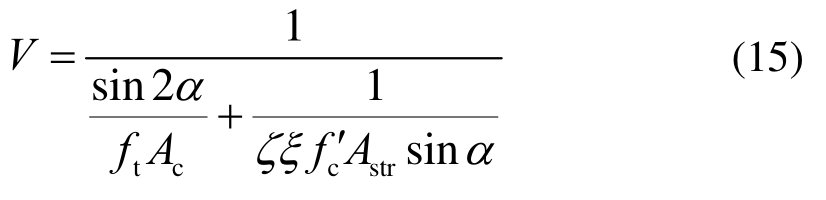 式中:ds为最小腹筋直径;ls为最大腹筋间距;ft1为混凝土抗拉强度。因此,考虑尺寸效应的拉压杆模型对深受弯构件受剪承载力V的计算见下式,即Tan-Cheng模型: