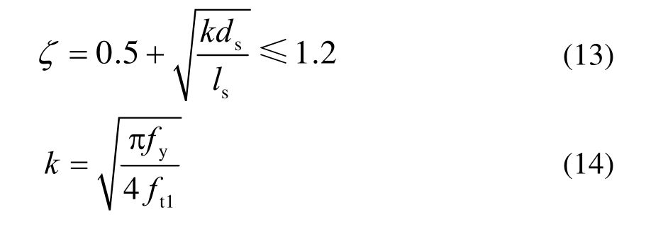 为合理量化分析腹筋间距和直径的影响,提出了考虑腹筋与混凝土相互作用关系的修正系数ζ [11]:
