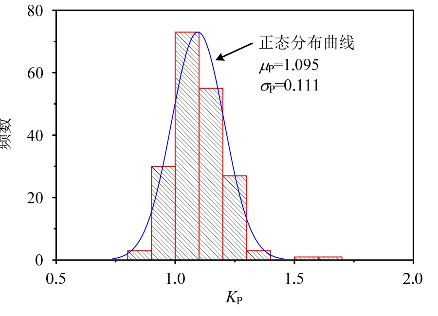 式中:KP是计算模式不定性;R0是实际抗力;Rc是公式计算的抗力值。