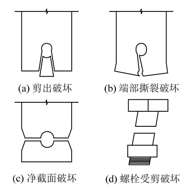 图5 单螺栓连接可能的破坏模式