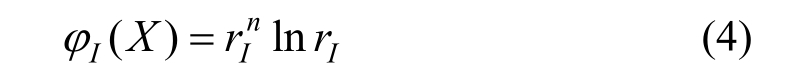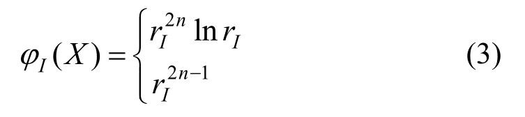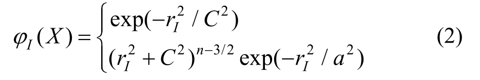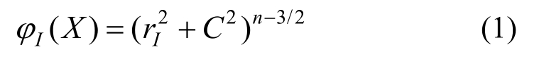是已知的形函数;dlti为待定系数。本文选取倒数形式的MQ RBF作为已知的形函数,根据1.1节的内容,在式(1)中取n=1可得到: