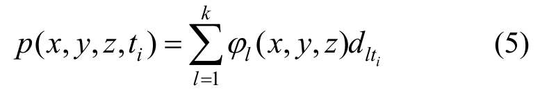 冷却塔外表面的风压场p(x, y, z, t)是空间和时间的函数,根据RBF法的基本原理,将任意时刻ti下的风压场p(x, y, z, ti)可展开成如下形式的级数: