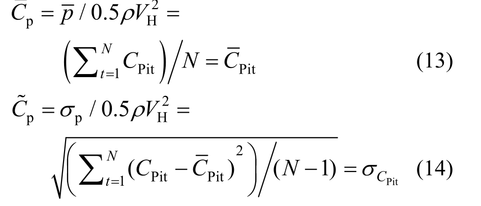 为各测点的所测风压的平均值及标准差;ρ为空气密度;VH为参考风速;N为样本 总数。