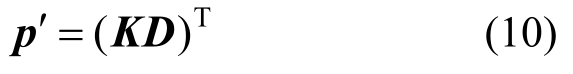 再根据重构点和源点的空间位置关系矩阵K,即可求得重构点各时刻下的风压p′(x, y, z, t),即: