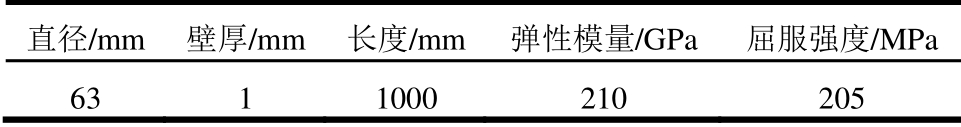 直径/mm 壁厚/mm 长度/mm 弹性模量/GPa 屈服强度/MPa 63 1 1000 210 205