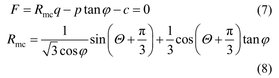 为平均应力;σ为应力张量;φ为q p- 应力面上Mohr-Coulomb屈服面的倾斜角,为材料的摩擦角,