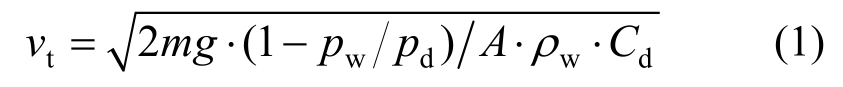 DNV-RP-F107中指出,坠物在水中的下落速度取决于物体的形状及在水中的质量,并将逐渐趋于稳定。其终止速度vt可表示为: