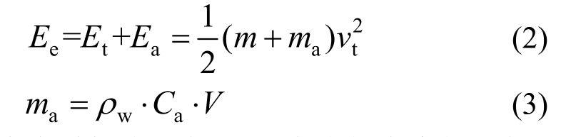 式中:Ee为有效撞击动能;Et为物体本身的动能;Ea为附加水质量的动能;ma为物体的附加水质量;ρw为海水密度;Ca为附加质量系数;V为物体在水中的体积。