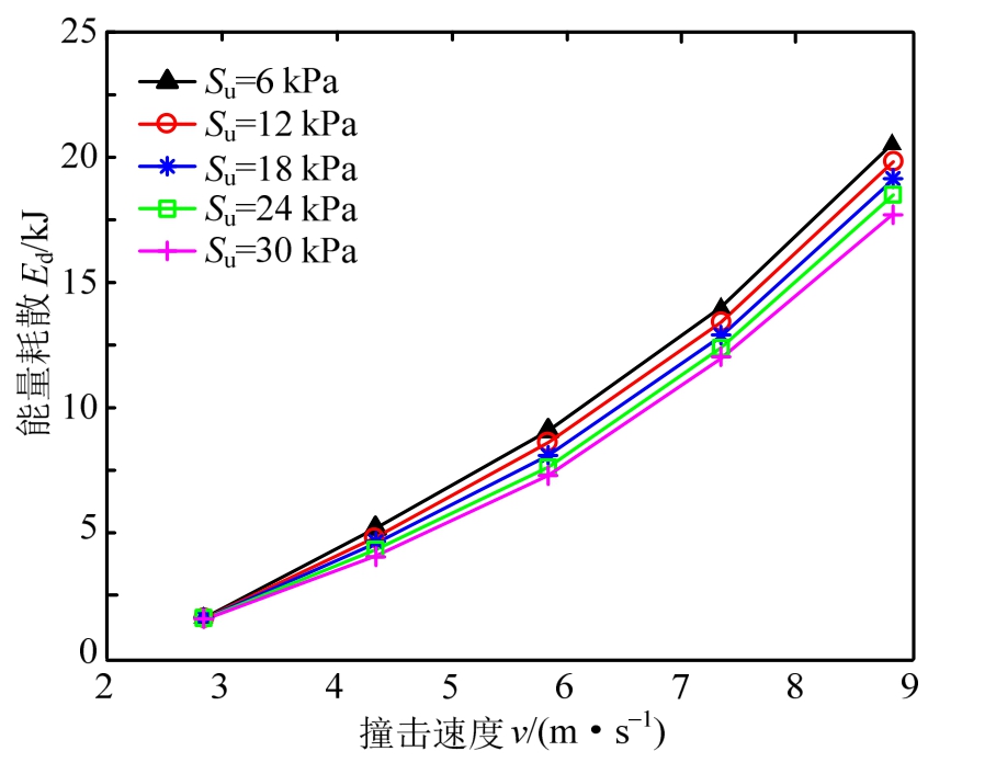 Fig.9 The effect of soil strength on energy dissipation