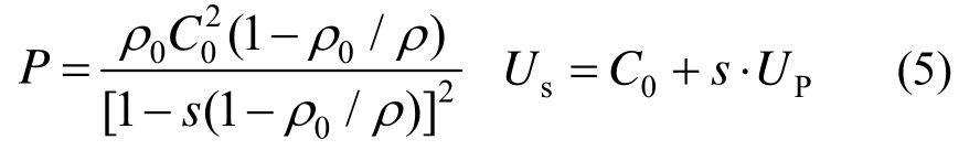 式中:P为压力;C0为声速;ρ0和ρ分别为初始密度与当前密度;s为无量纲材料参数,建立应力波速 Us与粒子速度 UP之间的关系,取为1.921[17]。