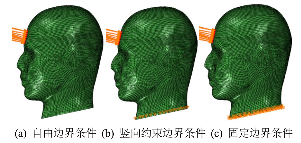 图5 三种不同边界条件的头部碰撞模型