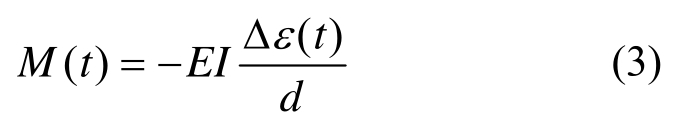 式中:EI为桥墩横向抗弯刚度; Δε(t)为墩底两侧应变差值;d为桥墩宽度。