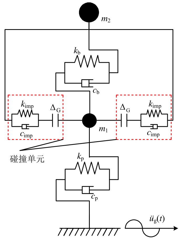 1)碰撞所产生的脉冲效应。当碰撞处于初始接触阶段时,两个碰撞体之间的相互作用主要受材料、形状及相对速度影响[19]。该阶段所产生的脉冲效应会使结构地震响应的频率成分发生改变。