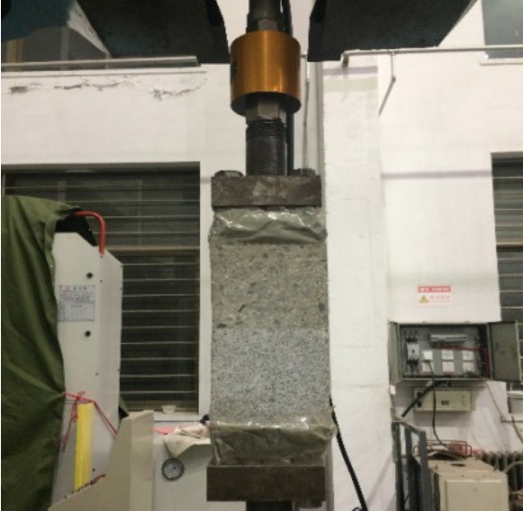 岩石-混凝土界面直拉试验如图5所示。加持装置上带有球铰,可以避免拉拔过程中受力偏心的影响。试件两端通过建筑结构胶与加持装置牢固粘接,保证试验过程中不会出现松动。