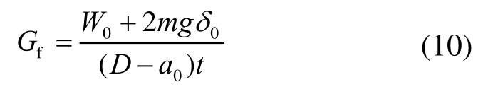 在研究混凝土的断裂行为时,Hillerborg等[17]提出的虚拟裂缝模型具有重要的作用。在该模型中,断裂能是一项非常重要的断裂参数,其有助于确定断裂过程区软化曲线的形状,是运用数值方法进行断裂研究必不可少的参数[18―20]。断裂能Gf的定义是裂缝前端断裂过程区单位面积吸收的外力功,用公式表示为:
