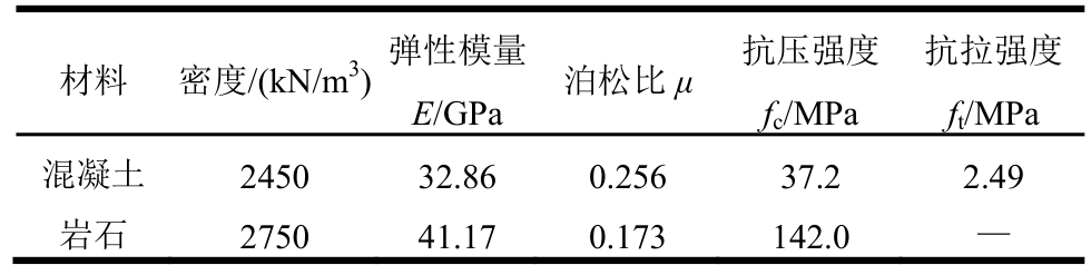 三点弯曲梁试验所用岩石-混凝土复合试件包含岩石和混凝土两种材料。其中岩石部分为花岗岩石材,取材自大连双塔石材加工厂,原材料在此加工厂制作成合适尺寸的试件后运送到实验室。混凝土材料强度设计等级为 C30,配合比为水泥∶砂子∶石子∶水=1∶2∶3.7∶0.6。其中,石子采用最大粒径为10 mm的瓜子石,砂子为普通河砂,水泥采用P.O.42.5普通硅酸盐水泥,由大连小野田水泥公司生产。岩石和混凝土材料的基本材料参数见表1。