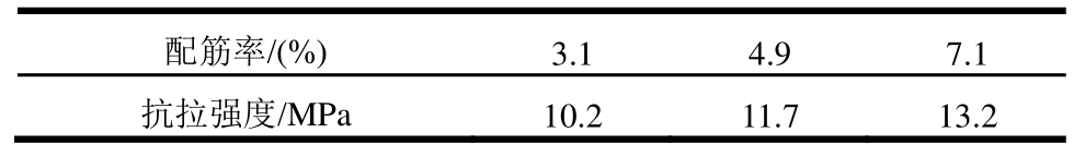 配筋率/(%) 3.1 4.9 7.1抗拉强度/MPa 10.2 11.7 13.2
