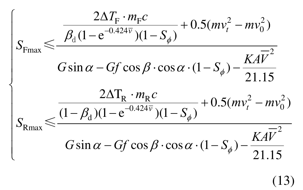 式中:SFmax/m、SRmax/m为保证前、后轮制动器不失效时对应的最大坡长。关于制动器温度最高值ΔTmax的选取则与制动器的材料及性能有关。