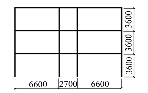 以按中国规范设计的6度、7度、8度设防的典型三层钢筋混凝土框架结构为分析对象,其立面布置如图5所示。该结构层高3.6 m,总高10.8 m,场地类别为Ⅱ类,其中6度和7度设防的结构设计地震动分组为第1组,8度设防的结构设计地震动分组为第2组。