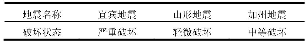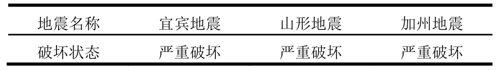 地震名称 宜宾地震 山形地震 加州地震破坏状态 严重破坏 严重破坏 严重破坏