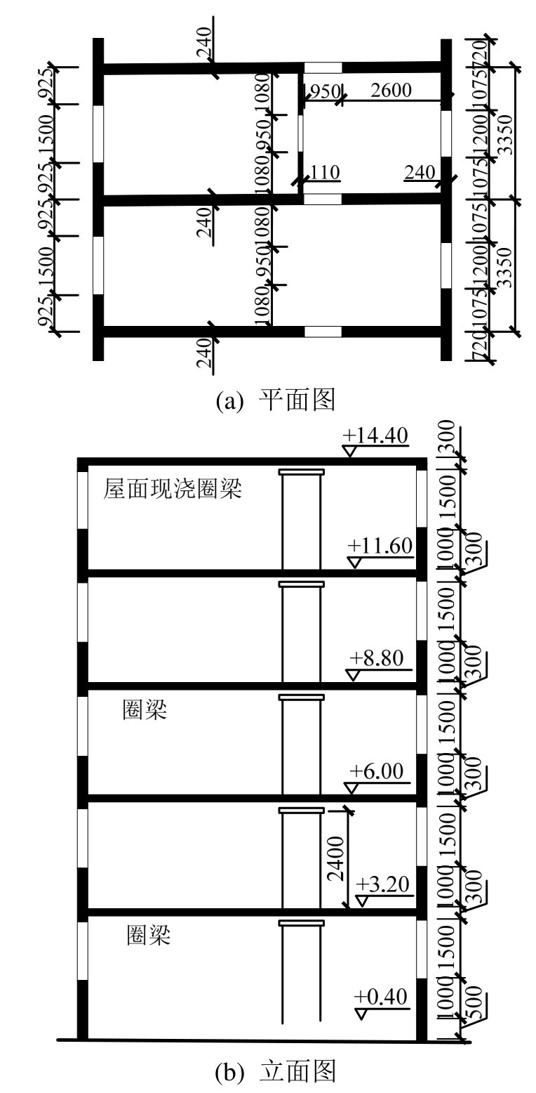 选取如图10所示朱伯龙等[11]开展的五层砌体结构足尺试验模型,跟上述未设防砌体采用同样的建模方法。输入图4对应地震动记录,可得该五层砌体结构的破坏状态如表7所示。