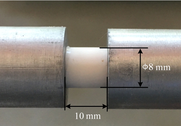 实验材料为已经市场化的氟金云母微晶玻璃陶瓷,主晶相分子式KMg3AlSi3O10F2,低切削用量车削精加工试件尺寸为φ8 mm×10 mm圆柱(图1)。物相组成为60%的氟金云母相,其余为以二氧化硅为主体的玻璃相混合物,部分材料性能参数见表1。